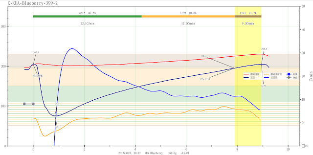 上面2張曲線,並不是單純的把抽風開大或關小就可以產生那樣的差異的,而同樣的生豆、同樣的失重、同樣的DTR,很接近的下豆溫,但不論在乾香、溼香、味譜、後韻、body、酸度、甜感、均衡度都會有不小的差異,尤其是下豆吹冷一個小時內就杯測的話,感受到的差異會更大。